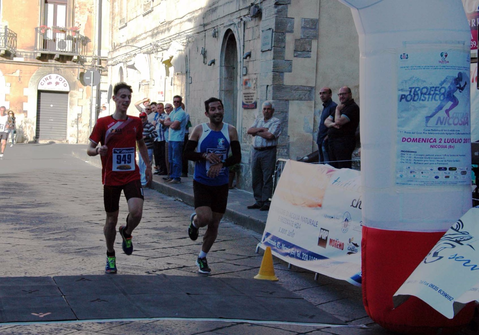 Alla fine dell’ultimo giro sul traguardo di piazza Garibaldi si sono presentati il nicosiano Enzo Copia(Atletica Futura di Figline Valdarno) e lo junior leonfortese Carmelo Calogero, con quest’ultimo che ha preceduto al fotofinish il favorito della vittoria e