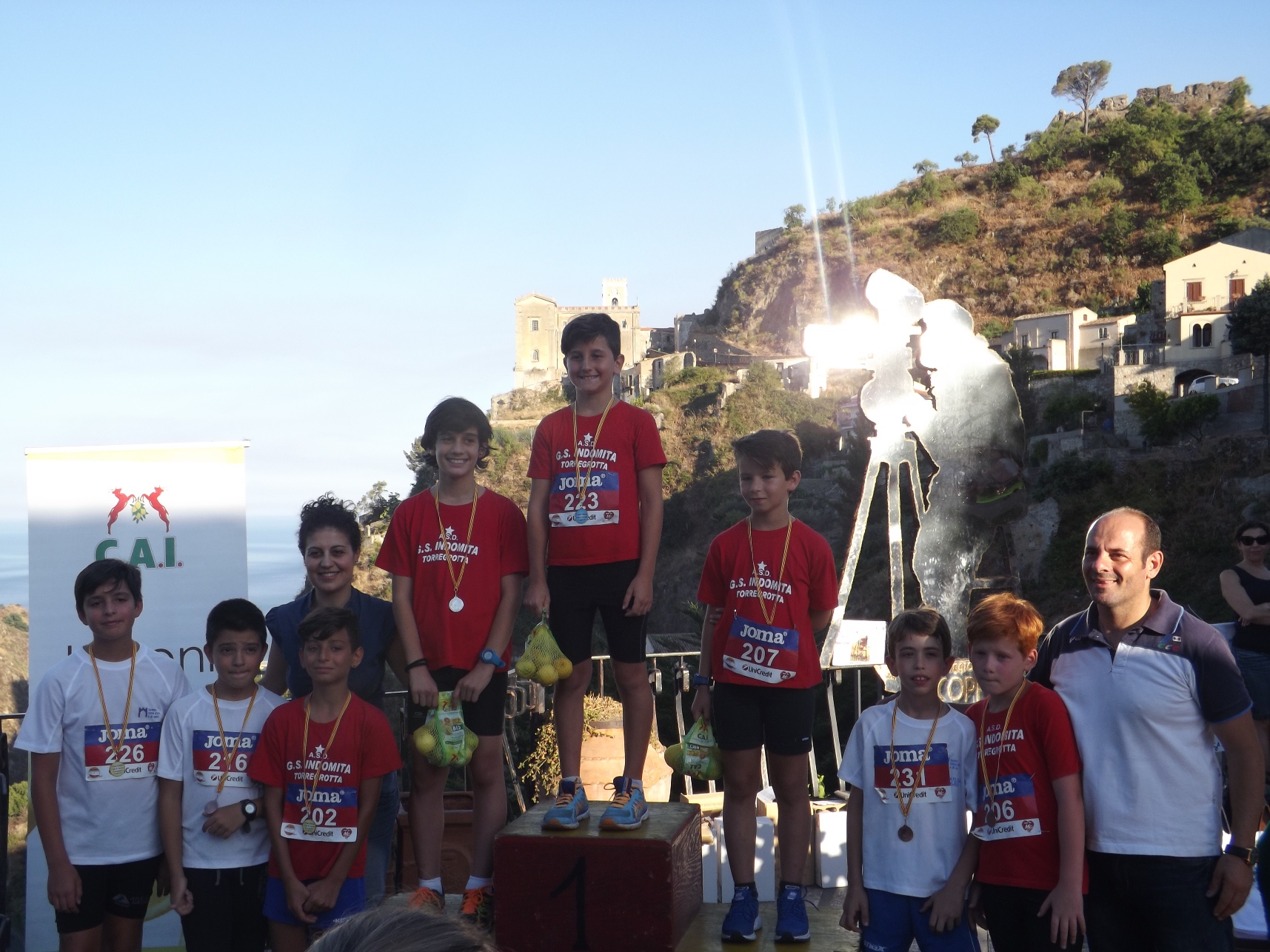 (Atletica Savoca); Ragazzi: Kevin Giorgianni (Atletica Villafranca); Ragazze: Ilenia Volzone (Atletica Savoca); Esordienti Maschile A: Giuseppe Antonino Aprile (Indomita Torregrotta); Esordienti Maschile B: Emanuel Tamà (Atletica Savoca); Esordienti Maschile C: Tommaso Rigano (Atletica Savoca); Esordienti Femminile A: Cristina Nicita (Atletica Savoca), Esordienti Femminile B: Sara Santoro (Atletica Savoca); Esordienti Femminile C: Asia Depu (Atletica Savoca). In chiusura, dopo la ricca premiazione, il ristoro finale per tutti i partecipanti a base di pane casereccio caldo condito.
