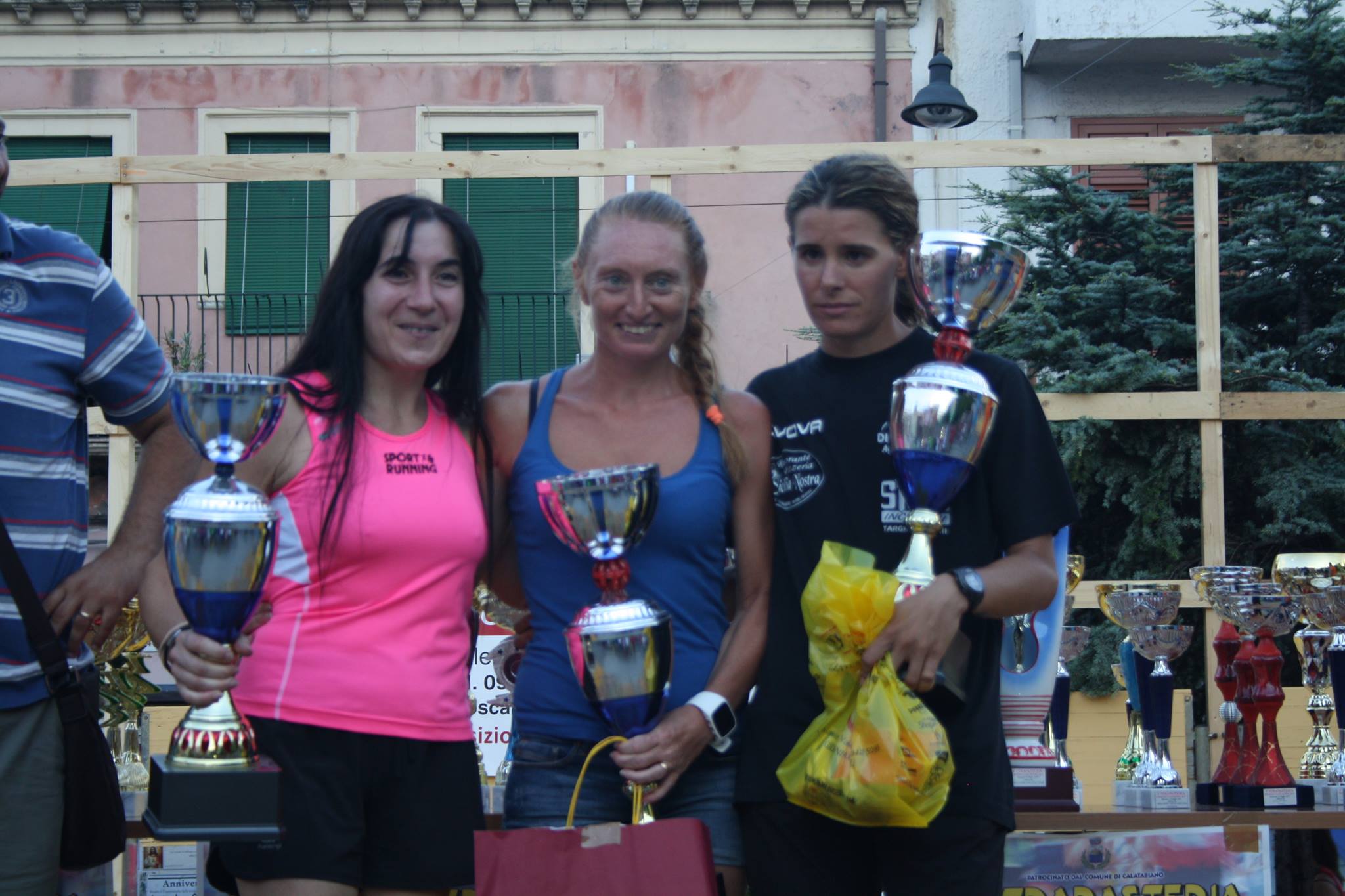 La gara femminile ha registrato anche qui una vittoria non certo facile per la bionda catanese Patrizia Strazzeri, che solo nell’ultimo dei tre giri previsti ha staccato definitivamente le avversarie, chiudendo prima con il tempo di 16’55’’; dietro di lei tre atlete in tre secondi con il podio appannaggio di Maria Grazia Vacirca (Atletica Scuola Lentini, 17’34’’) e di Carmela Motta (Fortitudo Catania, 17’35’’); mentre rimane in quarta posizione seppure con grande merito in questa gara l’atleta jonica Grazia Migliore (Marathon Club Taormina, 17’36’’).