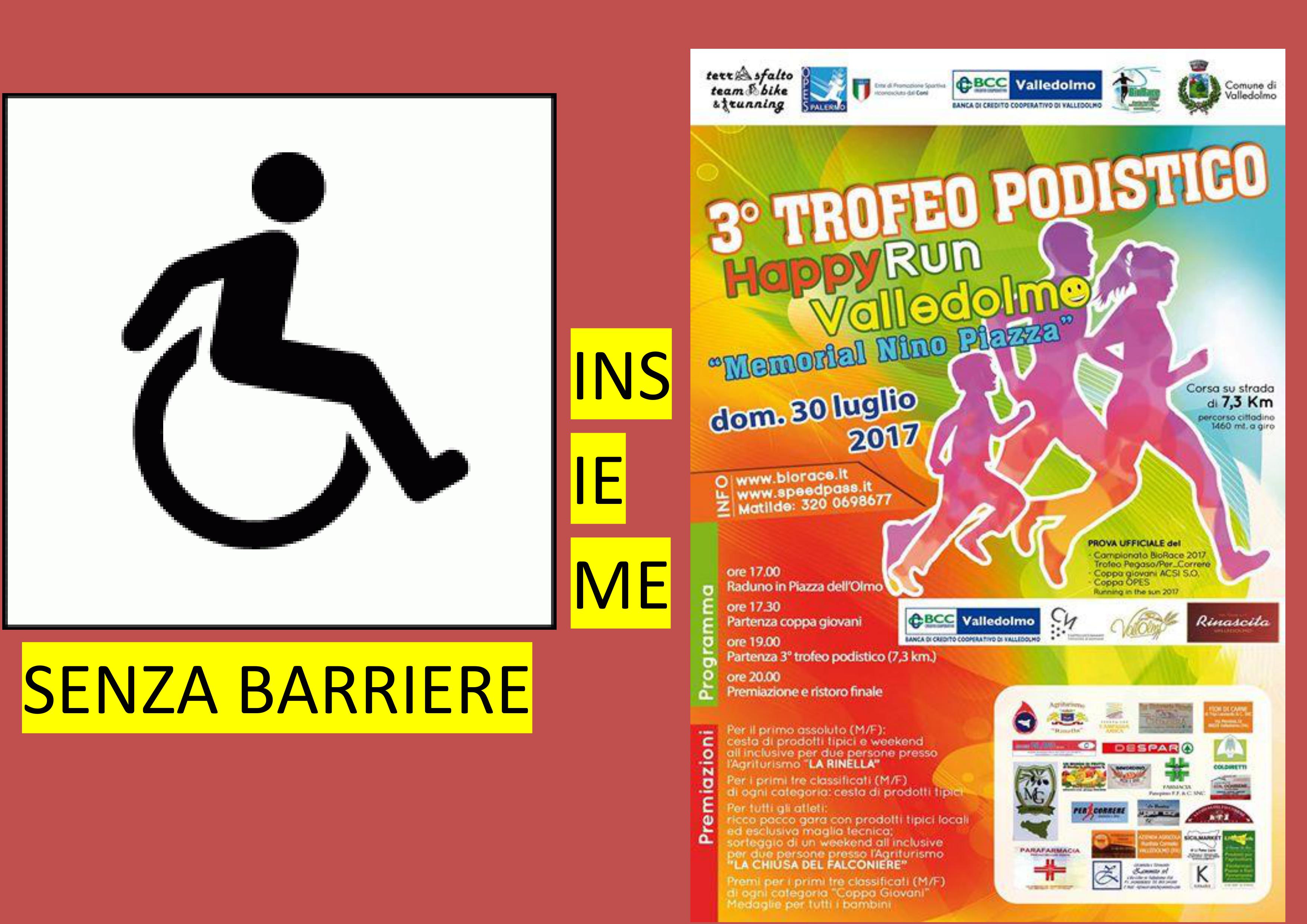 Valledolmo (Pa).Il programma tecnico della terza edizione della HappyRun Valledolmo in programma a Valledolmo (Pa) il 30 luglio ’17 si arricchisce di un altro importante tassello la prima edizione della “Insieme senza Barriere” gara riservata agli atleti diversamente abili.
