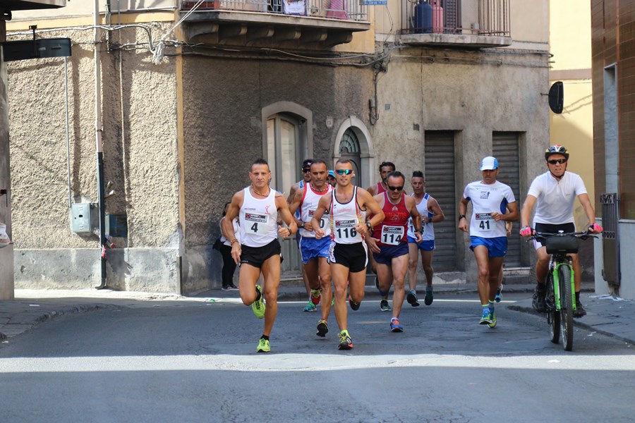 Una salita continua, dalla strada urbana per poi proseguire e terminare con circa due chilometri tra lastricato, sterrato e per non farsi mancare nulla, pietra lavica, ultimo tratto questo che porta fino alla piazzola adiacente la grotta del Santo, divenuta continua meta di pellegrini. Giornata calda, ma questo si sapeva già, con Lucifero (ci riferiamo solo al nome dato dai meteorologi al’ondata caldo torrido di questi ultimi giorni) che ha accompagnato gli atleti lungo nove chilometri con un dislivello di 470 metri. Alla fine la gara l’ha vinta uno che ha le salite nel DNA Vito Massimo Catania arrivato (tranquilli…in auto) dalla vicina Regalbuto. Tra le donne (pochine per la verità appena sedici), trionfo di Mariella Barbagallo (Placeolum).
