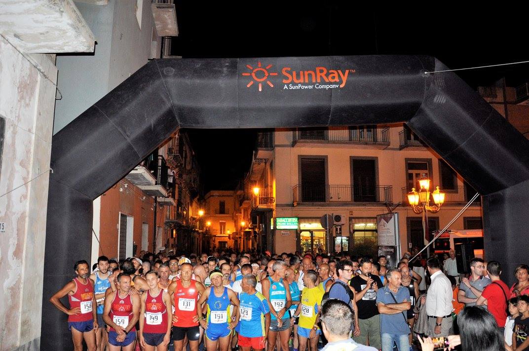 Alle 21,00 in punto gli atleti erano chiamati sotto l’arco di partenza posto in Piazza Municipio, ed ecco le prime emozioni con l’interminabile minuto di silenzio per onorare la memoria delle vittime della recente strage di Barcellona in Spagna, il silenzio invadeva di colpo la Piazza ed i volti dei presenti di rattristavano, qualcuno pregava perché questi atti di terrorismo finiscano per sempre, al grido di Pace-Pace-Pace e l’applauso liberatorio il Giudice Starter richiamava l’attenzione perchè era l’ora della tanto sospirata partenza.