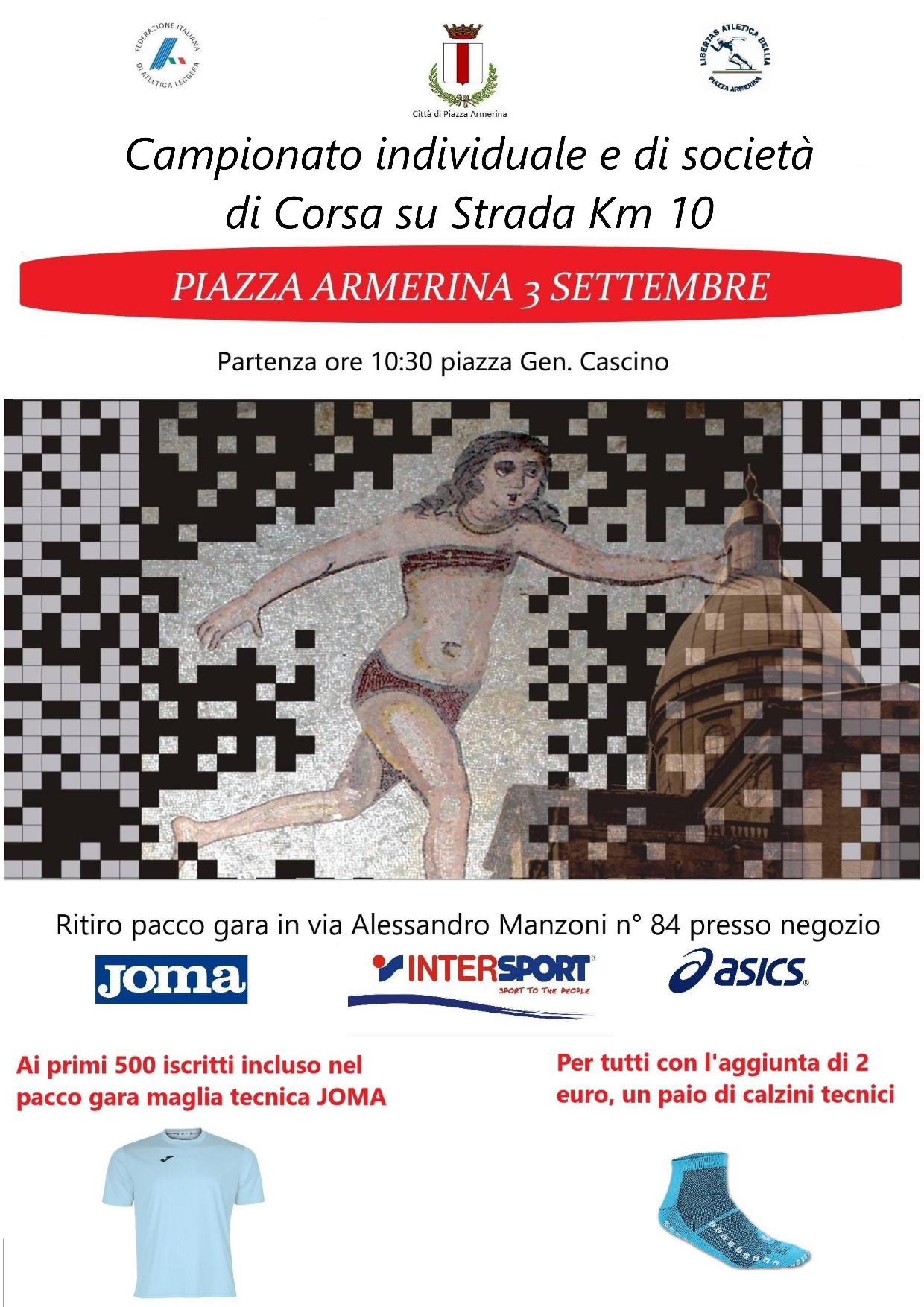 Con la prova di Piazza Armerina torna il prossimo 3 settembre il Grand Prix Sicilia di corsa su strada (settimo appuntamento). La manifestazione, indetta dal comitato regionale della Fidal Sicilia e organizzata dall’Atletica Bellia, sarà valida come 4a prova del Campionato regionale di società di corsa su strada. Ogni società può iscrivere un numero illimitato di atleti/e. Possono partecipare per la classifica del titolo di campione regionale Senior/Master tutti gli atleti a partire dalla categoria SM 35, tesserati con società siciliane.