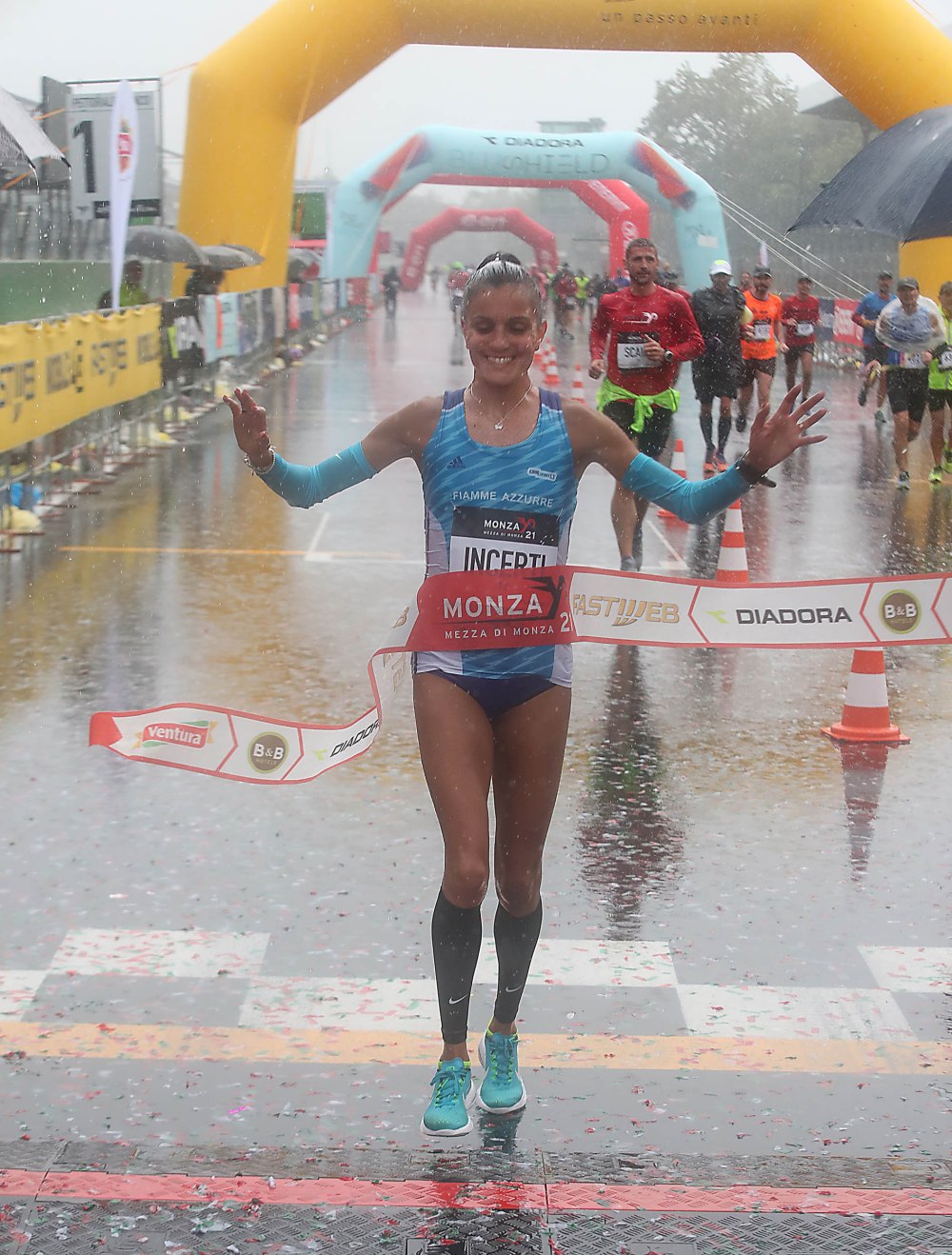 Pioggia a catinelle sulla Mezza di Monza. Partita dall’Autodromo Nazionale, la quattordicesima edizione oggi è stata pesantemente condizionata dal maltempo. Tra i 4200 runners al via sulle tre distanze in programma affermazione della campionessa europea 2010 di maratona Anna Incerti che, a