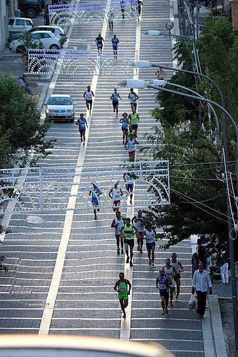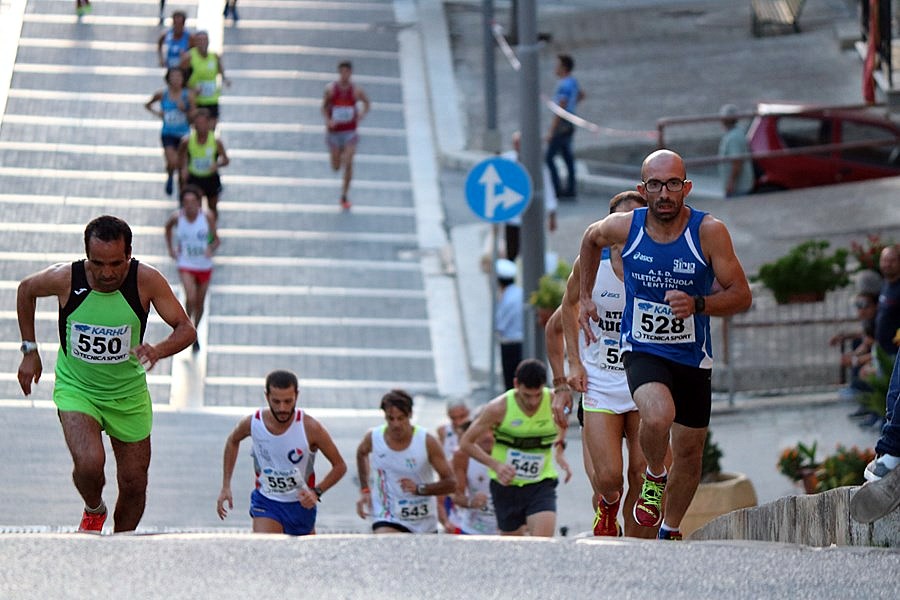 Sontuosa la gara  degli uomini appartenenti a tutte le altre categorie (per loro stesso percorso ma otto giri) con il duello annunciato tra Bibi Hamad e Giovanni Cavallo che ha esaltato i presenti, regalando un finale a sorpresa. A spuntarla per una manciata di secondi è stato l’allievo di Basilio Gurgone, che ha sfruttato tutta la sua potenza nell’ultima curva in salita quando già si vedeva il traguardo, annichilendo il marocchino. Protagonisti in lungo e in  largo Bibi e l’aretuseo, avevano condotto la gara facendo il classico elastico, con il primo bravo a prendere metri nei tratti piani e il secondo bravissimo a recuperare e a superare l’atleta Universitas in salita. Il finale è già stato raccontato, il resto l’ha fatto la gente assiepata in piazza e lungo il percorso, la conferma di un pubblico che vede come questa corsa come la propria. Terzo Luigi Spinali che solo nelle prime battute ha cercato di stare dietro i due battistrada, accontentandosi pian piano del gradino più basso del podio. Staccatissimi tutti gli altri, mentre primo degli atleti di casa è stato Mario Piraino sesto assoluto.
