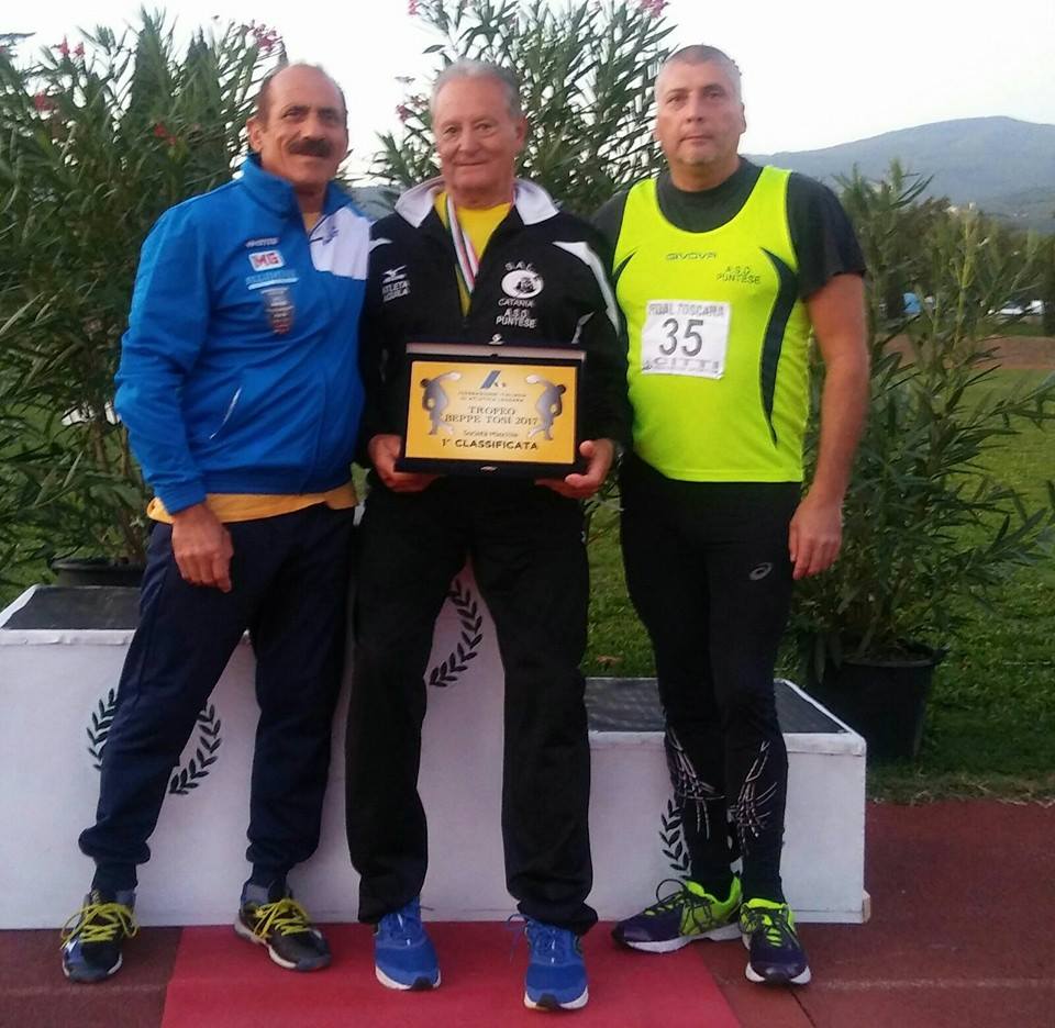 Di Michelangelo Granata.  Un bottino pieno della Puntese San Giovanni La Punta ai Campionati Italiani Estivi di Pentathlon Lanci Master. A Pistoia i lanciatori etnei si sono aggiudicati per il secondo anno consecutivo, dopo quello vinto nel 2016 a Catania, il Trofeo «Beppe Tosi», la Classifica di Società in base alla somma dei tre migliori punteggi individuali. Alla debita distanza La Fratellanza 1874 Modena, ferma a 9147 punti contro i 9826 dei nostri, terza l’Atl. Sandro Calvesi (9043). Per la Puntese di Giacinto Bitetti anche la terza vittoria di fila nel Grand Prix di questa disciplina. Tra le Società femminili, quarta la Scuola Atletica Leggera Catania di Giuseppe Sciuto.
