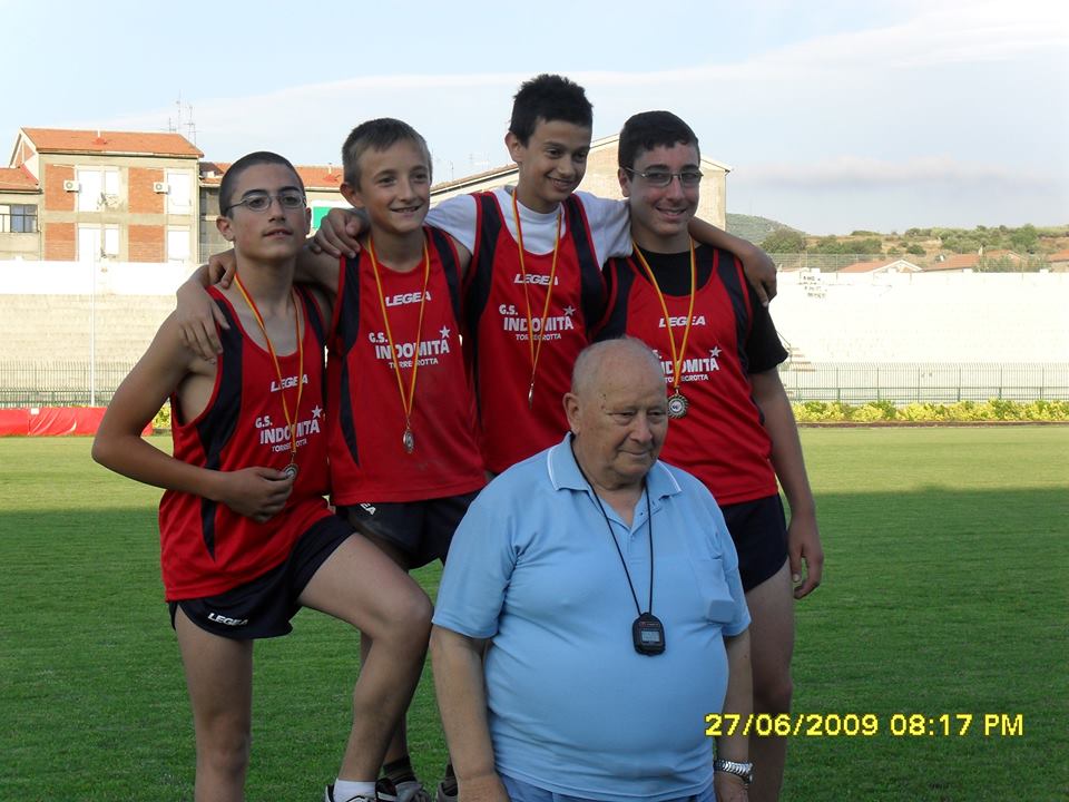 Lì era un’icona, un punto di riferimento, si sedeva sulla scaletta dei cronometristi, attorniato come una chioccia da un nugolo di ragazzini, per tutti aveva una parola e una battuta scherzosa. Era felice il prof. con tanta gioventù.