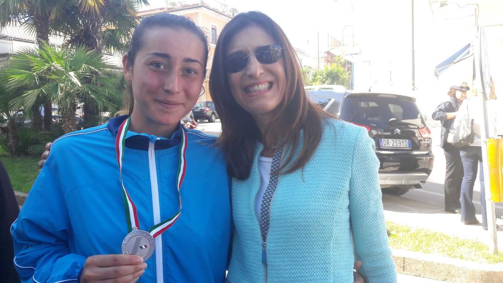 Alle spalle della Ilari una superba Clara Tasca (Catania 2000), ventesima assoluta (in una misura per lei sicuramente non congeniale) centra l’argento con il tempo di 1h29’05. Per la gelese Tasca, allenata da Massimo Bianca, anche òla gioia di essere stata premiata dalla moglie di Pietro Mennea, Manuela Olivieri.