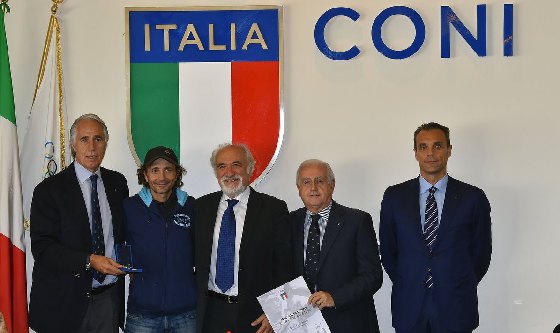 Momento speciale al Foro Italico durante la 1066ª riunione della Giunta Nazionale CONI. In apertura il presidente Giovanni Malagò ha consegnato la medaglia d’oro al merito sportivo al titolatissimo ultramartoneta azzurro Giorgio Calcaterra e Leonardo Cenci, l’uomo che ha scelto di affrontare il suo male incurabile correndo la maratona.