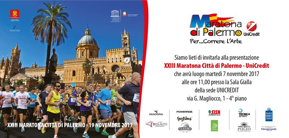 Palermo. Sarà presentata martedì 07 novembre, alle ore 11.00, presso la Sala Gialla della sede UniCredit di via Generale Magliocco 1, la XXIII edizione della Maratona di Palermo, in programma domenica 19 novembre. Nel corso della conferenza stampa verranno illustrate le novità della manifestazione, come il ritorno dell’expo maratona nel cuore della città a piazza Massimo e gli eventi collaterali, a cominciare dalla terza edizione della passeggiata ludico – motoria a sfondo sociale, denominata “La camminata del sorriso” – SISA Supermercati. Saranno presenti rappresentanti delle istituzioni locali, sportive e dei partner che sostengono l’evento.