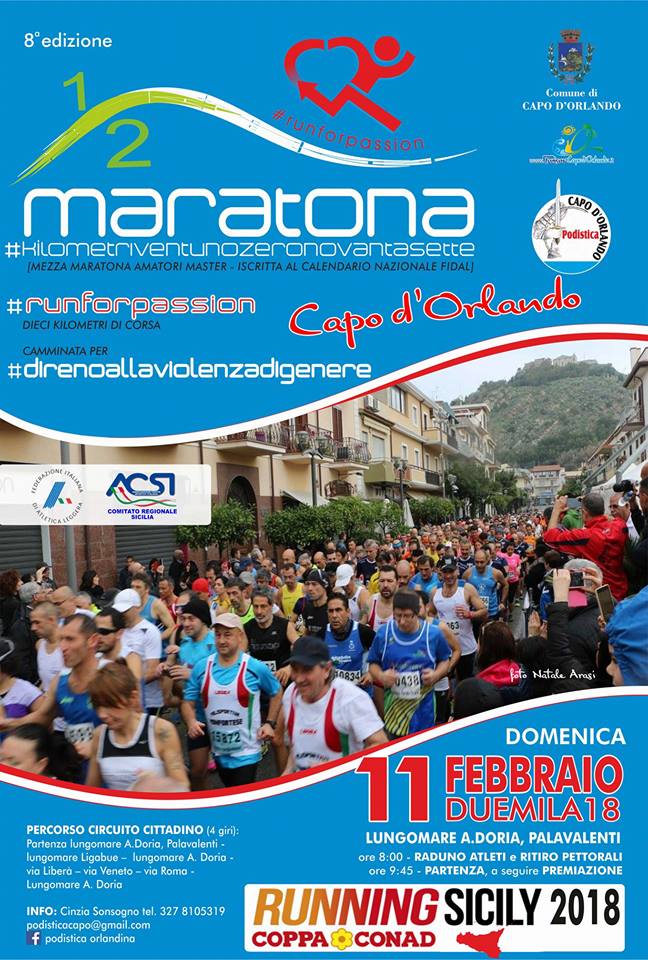 1) Ottava edizione della Mezza maratona città di Capo d’Orlando: domenica 11 febbraio torna una delle mezze più partecipate e attrezzate della Sicilia; subito una novità, la manifestazione farà parte del circuito Running Sicily 2018. Com’è nata questa sinergia con il patron Sorbello…