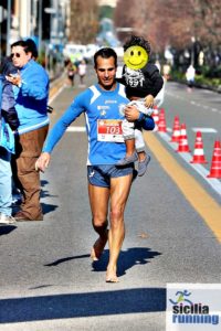 Ecco, Daniele da qualche anno (dopo aver iniziato la sua attività calzando normali scarpe da running e aver proseguito con scarpe minimaliste) ha scelto di correre a piedi scalzi, su qualsiasi percorso (asfalto, sterrato, montagna) in gara come in allenamento. Da “scalzo” ha corso 8 maratone (21 in tutto); l’ultima in ordine di tempo ieri a Messina chiudendo ventesimo assoluto con il tempo di 3h22’47. Un crono che non lo soddisfa più di tanto (non proprio nelle sue corde) come afferma dal suo profilo Facebook.  “Un percorso a sorpresa quello della Messina Marathon: circa 10 km da ripetere 4 volte e un terreno con molto pavimento pietroso, asfalto grezzo e ghiaia. Mi sono perso sul finale ero solo e con tutte quelle curve ho allungato di 600 metri.