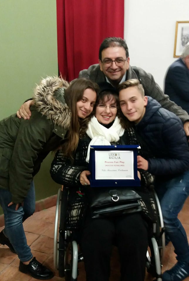 Un 2017 vissuto di corsa, spingendo la carrozzina di Giusi La Loggia affetta dalla sindrome atassica. Chilometri e chilometri tra mezze, maratone e distanze più brevi, 350 e forse più. Per tutto questo e per l’amore che ha sempre messo in queste sue “imprese” a Vito Massimo Catania è andato il premio USSI Fair Play Nuccio Schillirò. Assente per motivi di lavoro, Catania, il premio è stato ritirato, oggi, da Giusi La Loggia sua “compagna” di corsa, durante la cerimonia di consegna dei premi dell’anno USSI Sicilia che si è svolta presso il Museo della Musica e Piedimonte Etneo. Riconoscimento quello di oggi che si aggiunge ai tanti ricevuti negli ultimi mesi da Vito Massimo Catania atleta tra i più forti del panorama amatoriale siciliano ma al tempo stesso, schivo, umile e generoso.