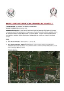 Palermo. La Sicily Warriors Mud Race, in programma il prossimo 23 dicembre, è una OCR, Obstacle Course Race; la gara prevede corsa su sterrato e terreni accidentati con il superamento di ostacoli naturali e artificiali, come balle di fieno da saltare, filo spinato, “tappeti” di pneumatici da superare, fossati, paludi ed ancora prove di equilibrio, forza velocità e destrezza. La Sicily Warriors Mud Race prevede due circuiti, uno di questi è riservato ai bambini.