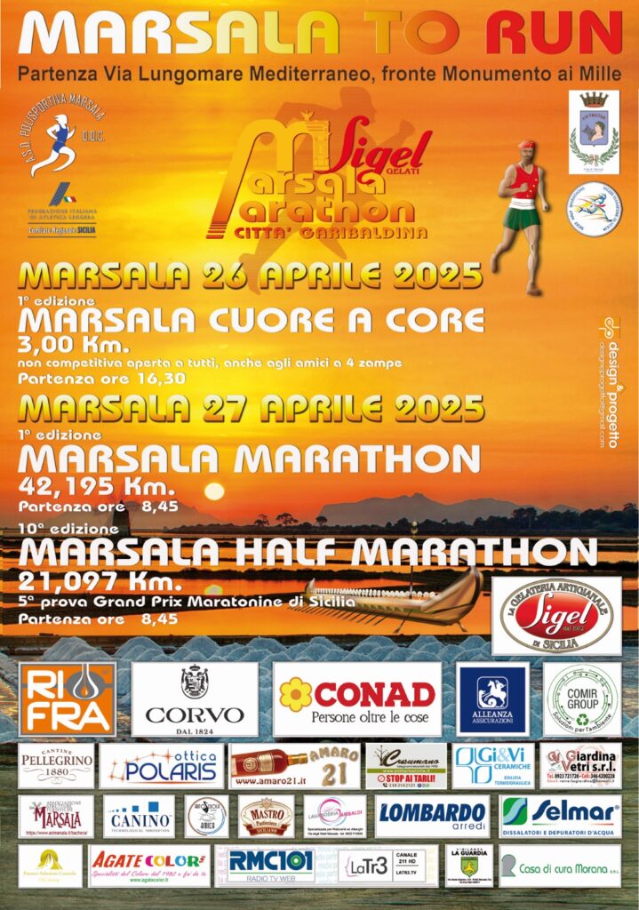 MARSALA – Importanti aziende, unitamente a tanti altri sponsor, sostengono il progetto della Polisportiva Marsala Doc nell’organizzazione della “Sigel Marsala Marathon – Città Garibaldina” (insieme alla contestuale Mezzamaratona, inserita in calendario nazionale come “Bronze Medal” e in quello del Grand Prix Fidal regionale) in programma domenica 27 aprile. Un impegno, quello degli sponsor, che va a premiare l’incessante lavoro del Presidente Filippo Struppa, del Vicepresidente Michele D’Errico e del Consiglio direttivo della società biancazzurra per far convergere su Marsala tanti atleti da ogni parte d’Italia. E stavolta anche dall’estero. Alla Maratona, infatti, parteciperanno anche due keniani e un marocchino.