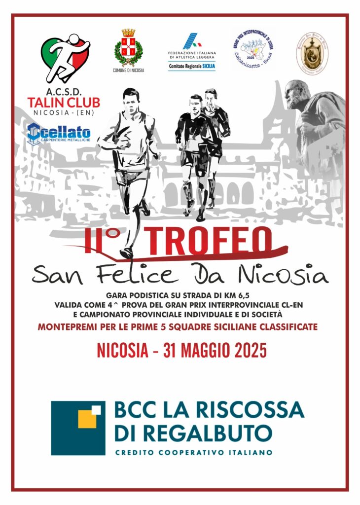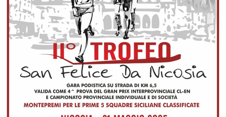 NICOSIA (EN) – Sabato 31 maggio 2025, il centro storico di Nicosia si trasformerà in un circuito cittadino per accogliere la 2ª edizione del Trofeo San Felice, gara podistica organizzata dalla Talin Club, inserita nel calendario regionale FIDAL e valida come: