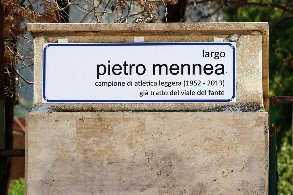 Questa mattina, è stata scoperta la targa che riporta la scritta “Largo Pietro Mennea” nello spazio antistante lo stadio delle Palme – Vito Schifani, proprio al fianco della porta carraia dello stadio di atletica leggera, a pochi passi alla villetta. La porzione di strada interessata è il viale del Fante. Alla cerimonia sono stati presenti, tra gli altri, l’assessore allo Sport del comune di Palermo, Alessandro Anello, con tanto di fascia tricolore, gli olimpionici Salvatore Antibo, Rachid Berradi, Antonio Selvaggio, Vittorio Di Simone patron della storica Targa Olimpica, il tecnico del Cus Palermo Gaspare Polizzi, il consigliere federale della Fidal Salvatore Gebbia e il giornalista Mario Pintagro, promotore dell’iniziativa.