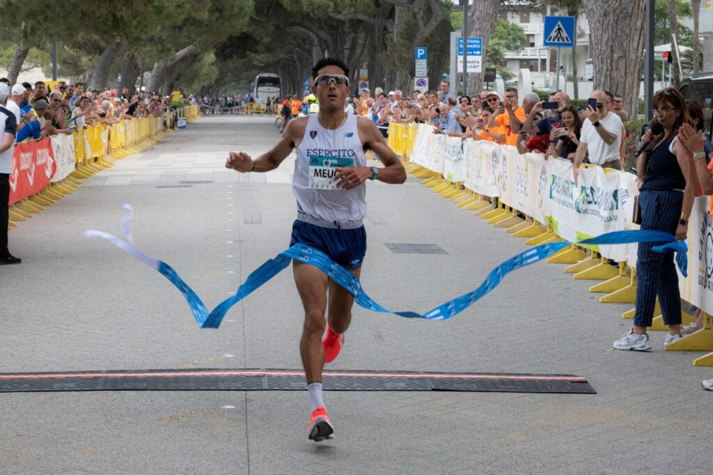 (Bibione/Lignano Sabbiadoro, 15 giugno 2025) Tra terra, cielo e mare, il più veloce è l’azzurro Daniele Meucci. Il trentanovenne pisano dell’Esercito ha vinto la seconda edizione della Over Borders Half Marathon, andata in scena ieri sera sul percorso da Bibione a Lignano con il nuovo record di iscritti (1.020) e oltre 850 classificati nel tempo massimo (3 ore). Meucci, campione europeo a squadre della specialità l’anno scorso a Roma, ha chiuso in 1h05’52”, ampio record della gara. Nell’albo d’oro dell’evento organizzato dal Running Team Conegliano, succede al keniano Elisha Rotich che l’anno scorso, sul percorso inverso (da Lignano a Bibione), aveva fermato il cronometro a 1h09’33”. Piazze d’onore per il kenyano Vincent Ntabo Momanyi (1h06’45”) e Alessandro Giacobazzi (1h06’50”).