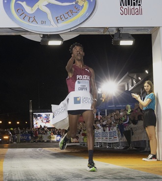Un poker consecutivo, il quinto successo in totale. È ancora Yeman Crippa il padrone del Giro delle Mura Città di Feltre, la classica corsa su strada in provincia di Belluno arrivata alla 36esima edizione che incorona di nuovo il fuoriclasse trentino. L’azzurro delle Fiamme Oro domina con il tempo di 25:27 sui circa 9,5 chilometri del percorso: decisivo l’attacco intorno a metà gara, prolungando la serie vincente avviata nel 2022 dopo aver festeggiato il primo urrà nel 2018. Oltre mezzo minuto il vantaggio sul secondo posto di Pasquale Selvarolo (Fiamme Azzurre) che chiude in 26:00. Per la terza piazza il keniano Vincent Towett con 26:11 stacca Daniele Meucci (Esercito, 26:28) e il rientrante Nekagenet Crippa (Esercito, 26:30). “Si correva bene – racconta Yeman Crippa – nonostante il tracciato bagnato per la pioggia caduta in precedenza. Ho avuto sensazioni molto buone, negli ultimi due mesi ho lavorato nel migliore dei modi a Sankt Moritz dove tornerò per rifinire la preparazione con l’obiettivo della maratona dei Mondiali di Tokyo”.