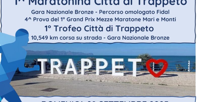 Trappeto si prepara a vivere una domenica di grande sport e di festa. Il prossimo 28 settembre andranno infatti in scena due eventi che richiameranno atleti da tutta la Sicilia e oltre: la 1ª Maratonina Città di Trappeto (21,097 km), valida come prova del Grand Prix regionale di mezze maratone Mari e Monti, e il 1° Trofeo Città di Trappeto sulla distanza di 10,549 km.