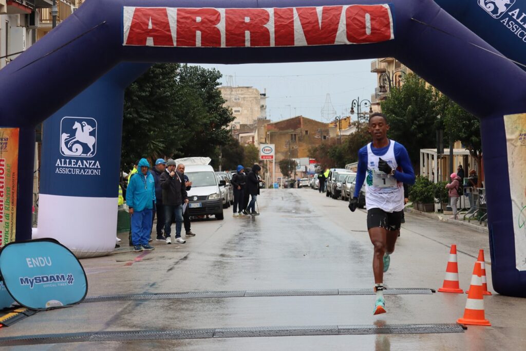 Vittoria come da pronostico, con record del percorso, per Soumaila Diakite (Universitas Palermo) che bissa il recente successo alla mezza di mazara del Vallo. L’atleta del Mali, palermitano di adozione, metro dopo metro fa il vuoto e taglia il traguardo con un crono di 1h08’52. Seconda piazza per Wilason Marquez (GS Avis Barletta) sicuramente a suo agio nelle distanze più corte ma autore di una prova tutta testa e gambe. Per l’atleta originario della Repubblica dominicana il tempo di 1h12’07. Si conferma in ripresa Mohamed Idrissi (Mega Hobby Sport) in 1h15’42.