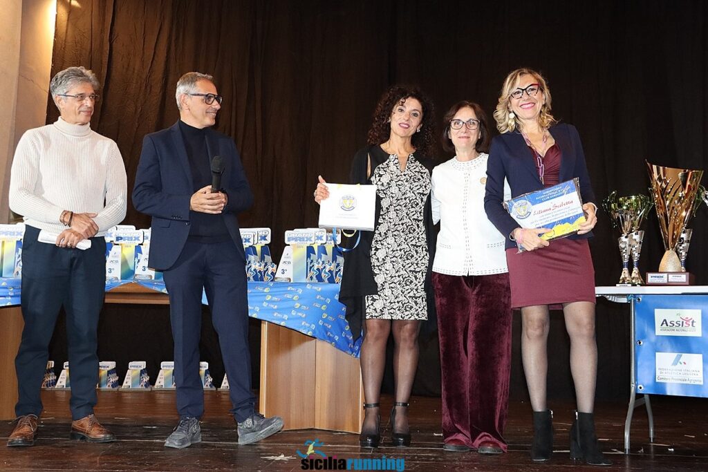 Sul palco sono saliti i vincitori delle classifiche di società, ma anche i valori che l’atletica leggera continua a rappresentare. Importante e significativa la presenza del Soroptimist Club di Agrigento, da sempre impegnato nella promozione della parità di genere in ogni ambito, sport compreso. Per mano della presidente Paola Toscano sono stati consegnati due riconoscimenti a due donne che incarnano perfettamente impegno e passione sportiva: Giusy Baldassano e Liliana Scibetta, quest’ultima delegato provinciale FIDAL Agrigento.