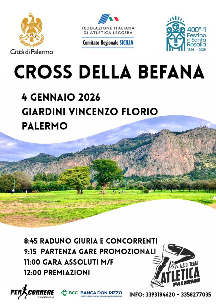 Il podismo a Palermo riparte nel segno della ritrovata tradizione con il Cross della Befana, prima gara dell’anno (a Palermo e provincia) in programma domani 4 gennaio 2026, organizzata dall’ASD Team Atletica Palermo.