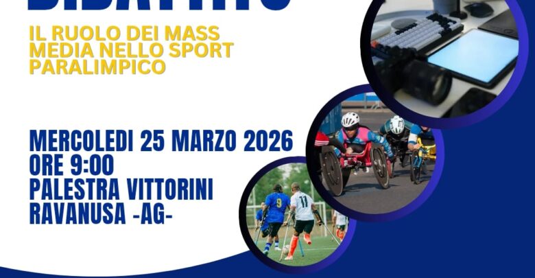 Si terrà mercoledì 25 marzo 2026, alle ore 9:00, presso la Palestra Vittorini di Ravanusa (AG), il convegno-dibattito dal titolo “Il ruolo dei mass media nello sport paralimpico”, un importante momento di confronto dedicato alla comunicazione e alla valorizzazione dello sport inclusivo.