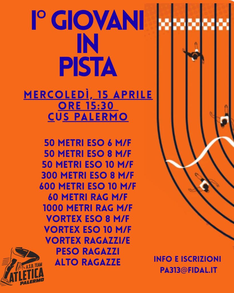 Prenderà il via domani mercoledì 15 aprile, il primo appuntamento di “Giovani in pista”, manifestazione di atletica leggera organizzata dal Team Atletica Palermo e inserita nel Calendario Territoriale FIDAL 2026.