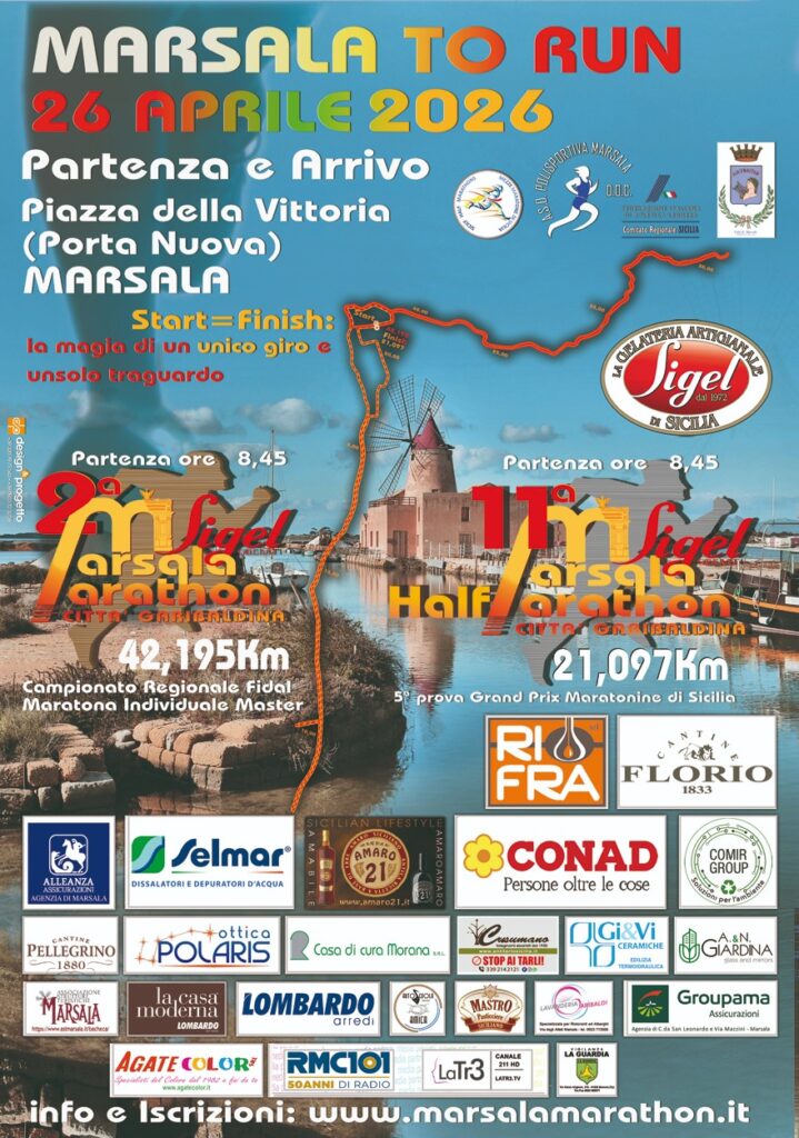 Anche quest’anno importanti aziende, insieme a tanti altri sponsor, sostengono il progetto della Polisportiva Marsala Doc nell’organizzazione della “Sigel Marsala Marathon – Città Garibaldina” (insieme alla contestuale Mezzamaratona, inserita in calendario nazionale come “Bronze Medal” e in quello del Grand Prix Fidal regionale) in programma domenica 26 aprile. Un impegno, quello degli sponsor, che va a premiare l’incessante lavoro del Presidente Filippo Struppa, del Vicepresidente Michele D’Errico e del Consiglio direttivo della società biancazzurra per far convergere su Marsala tanti atleti da ogni parte d’Italia e anche dall’estero.